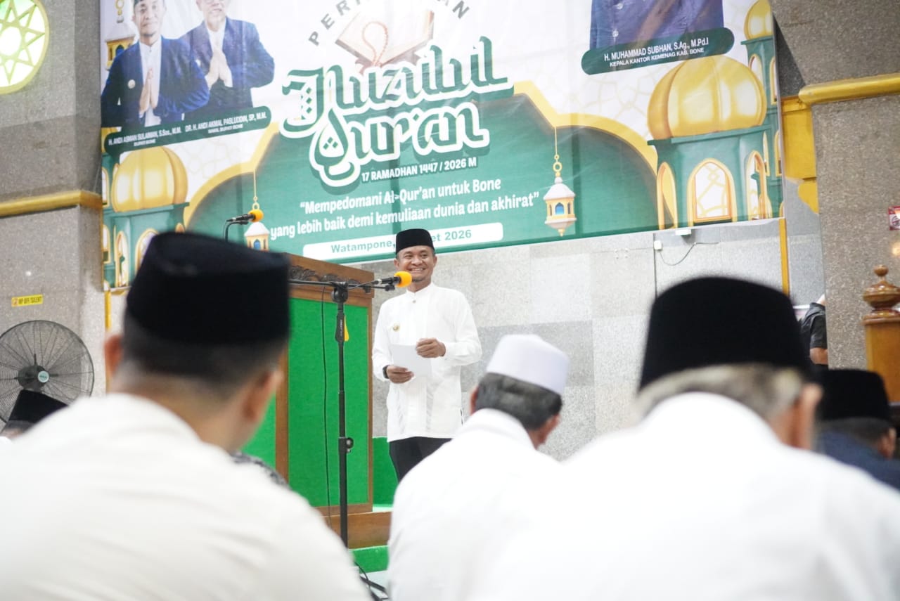 Bone, Bineka.co.id – Bupati Bone H. Andi Asman Sulaiman, Sos., MM. Bersama Wakil Bupati Bone Dr. H. Andi Akmal Pasluddin, SP., MM. Menghadiri Peringatan Malam Nuzulul Qur’an 17 Ramadhan 1447 H. Di Masjid Agung Al Markaz Al Ma’Arif, Jum’at 6 Maret 2026.