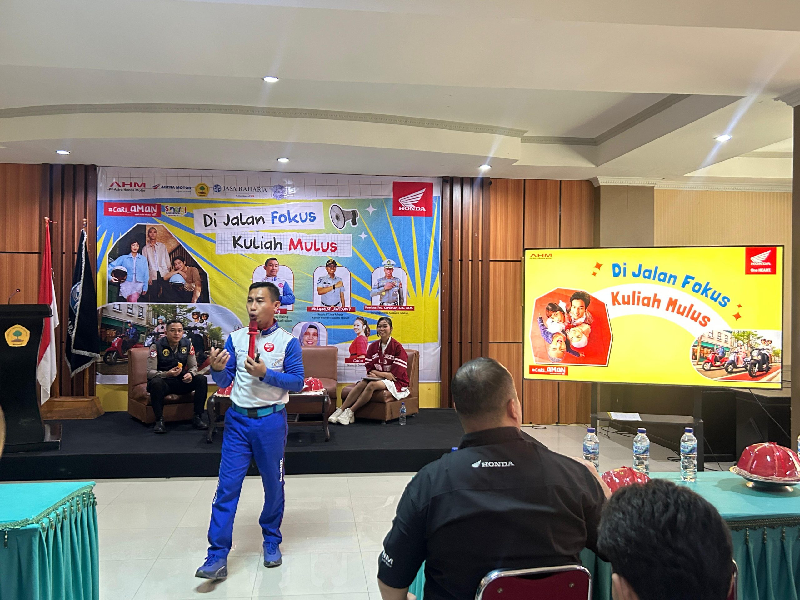 Bineka.co.id, Makassar – Astra Motor Sulawesi Selatan (Asmo Sulsel) selaku main dealer sepeda motor Honda untuk wilayah Sulawesi Selatan, Barat, Tenggara, dan Ambon, kembali menggelar kegiatan edukasi keselamatan berkendara bagi generasi muda. Kali ini, Asmo Sulsel berkolaborasi dengan PT Jasa Raharja Sulawesi Selatan dan Polda Sulawesi Selatan melalui seminar bertajuk “Di Jalan Fokus, Kuliah Mulus”, yang digelar pada Jumat, 19 September 2025 di Sekolah Tinggi Ilmu Ekonomi (STIEM) Bongaya Makassar.