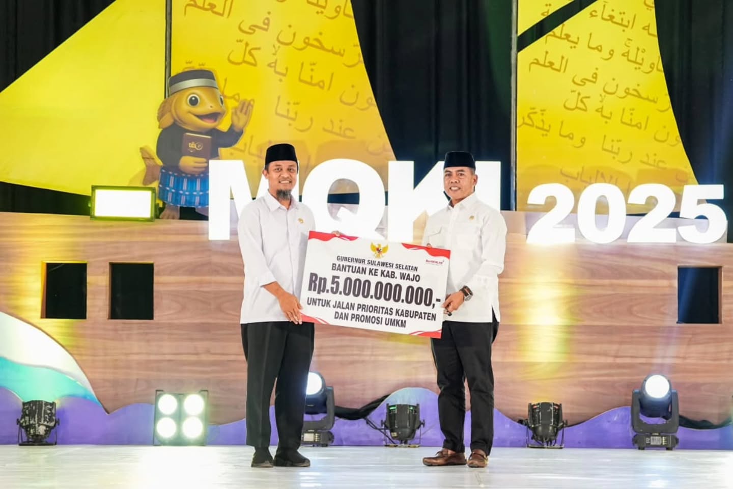 Makassar, Bineka.co.id – Gubernur Sulawesi Selatan, Andi Sudirman Sulaiman menyalurkan bantuan sebanyak Rp 5 Miliar untuk perbaikan jalan prioritas di Kabupaten Wajo dan promosi UMKM.