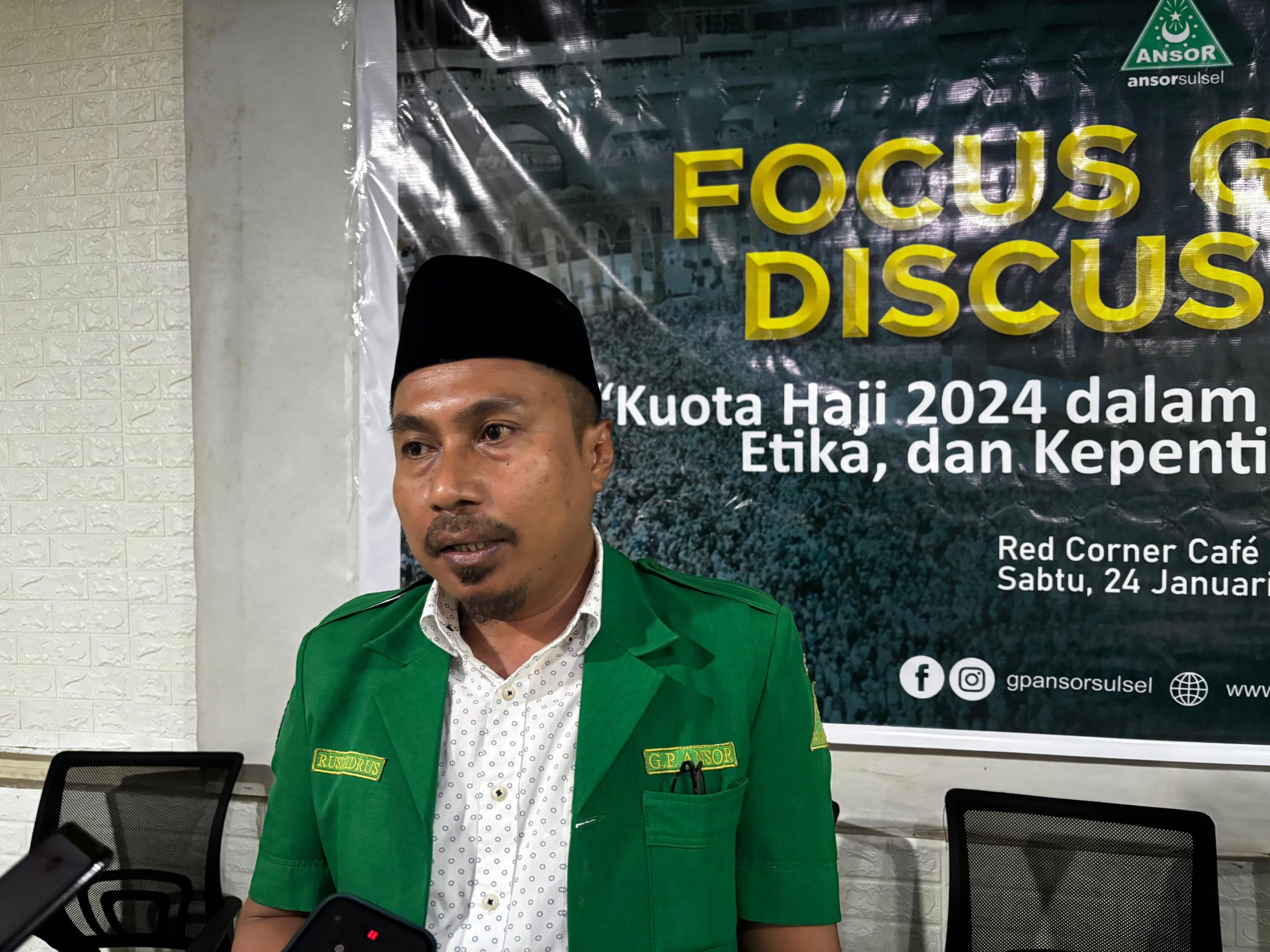 Ketua Umum Pengurus Wilayah GP Ansor Sulsel, Rusdi Idrus menyampaikan bahwa FGD tersebut digelar sebagai respons atas berkembangnya isu kuota haji yang dinilai sarat tudingan dan fitnah terhadap Gus Yaqut.
