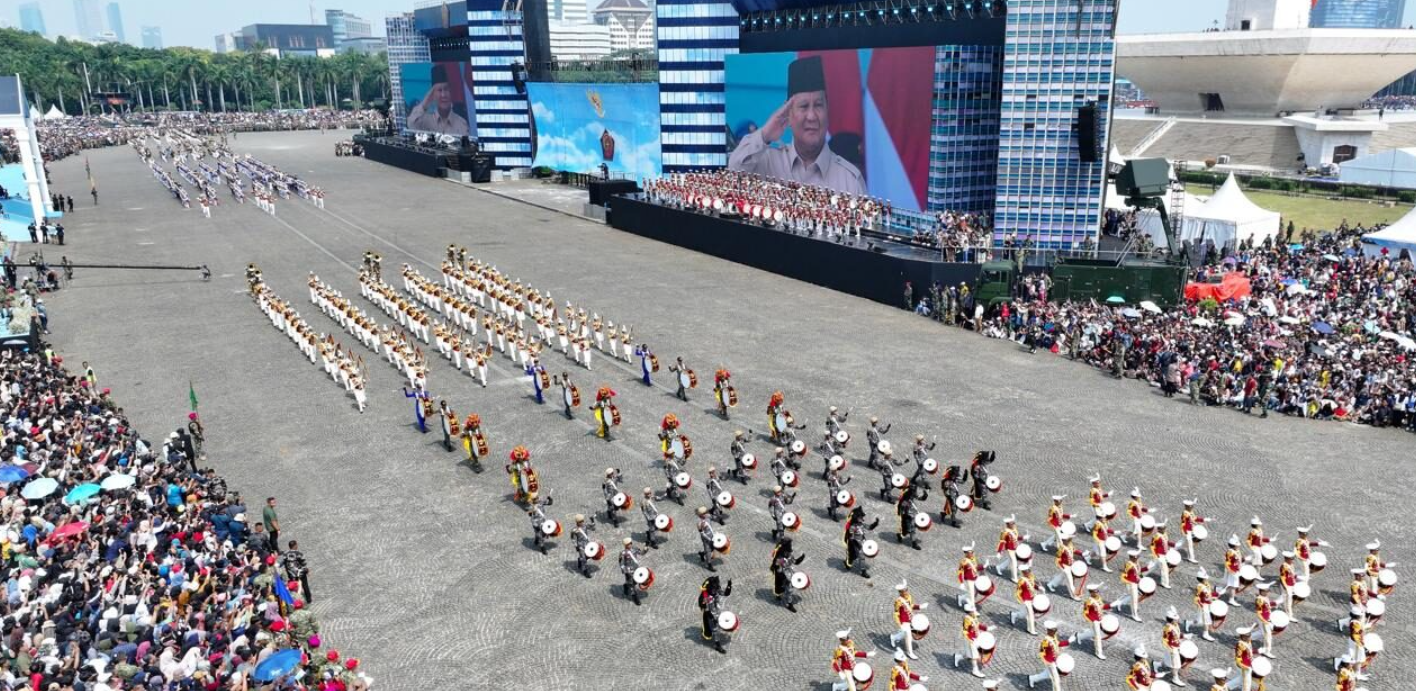 Dari mimbar kehormatan, Presiden Prabowo memperhatikan dengan seksama setiap manuver dan formasi yang ditampilkan para prajurit. Kawasan Monas seketika menjelma menjadi panggung megah yang menampilkan sinergi kekuatan darat, laut, dan udara.