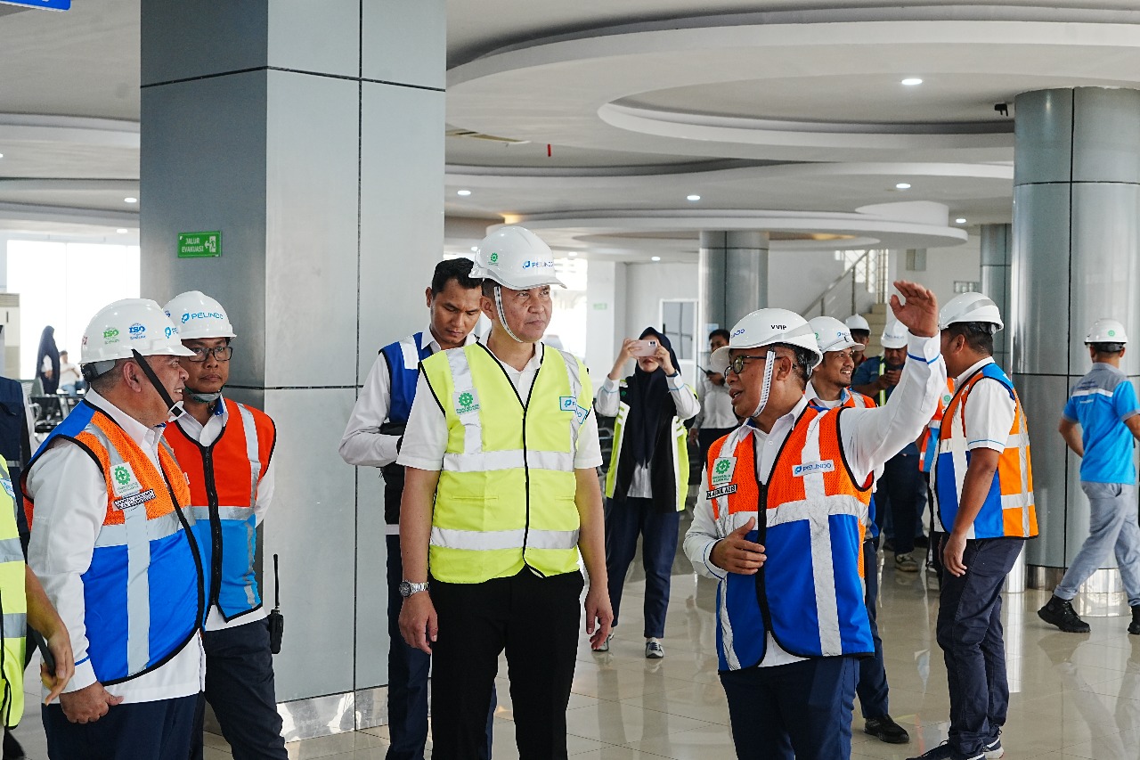 Rombongan juga mengamati fasilitas strategis seperti area check-in, ruang tunggu, pos keamanan, fasilitas ramah disabilitas, serta titik keberangkatan dan kedatangan. Fokus utamanya tertuju pada kelancaran pergerakan penumpang, kenyamanan area layanan, dan konsistensi operasional yang diterapkan Pelindo.