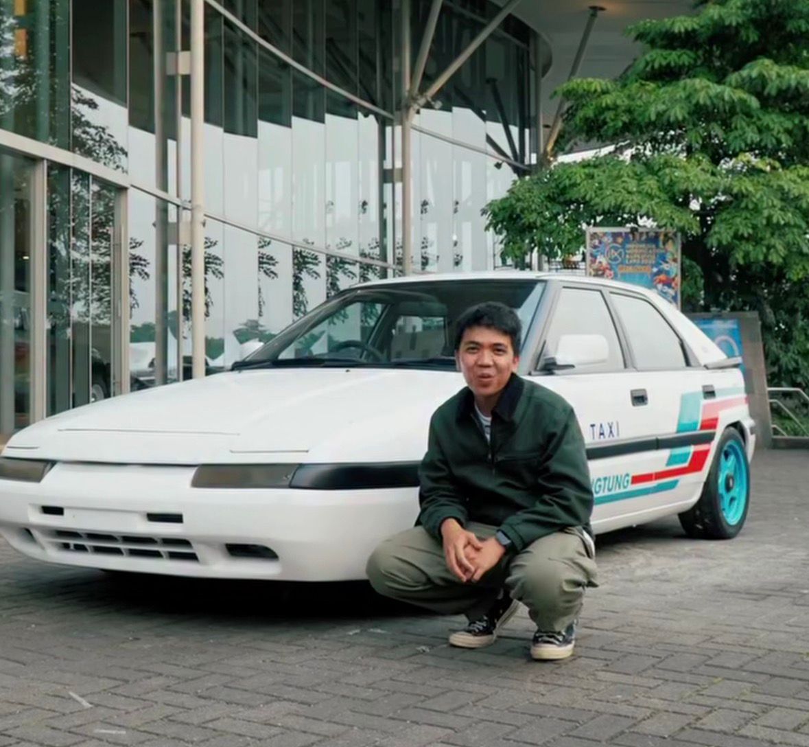 Hasil akhirnya menonjol dengan warna putih bersih, emblem kecil di sisi pintu, serta desain bodi sederhana namun autentik khas mobil Jepang era 1990-an. Sentuhan humor juga hadir lewat julukan “Taksi Tingtung” yang diambil dari karakter khas Arif Brata sebagai komika asal Makassar.