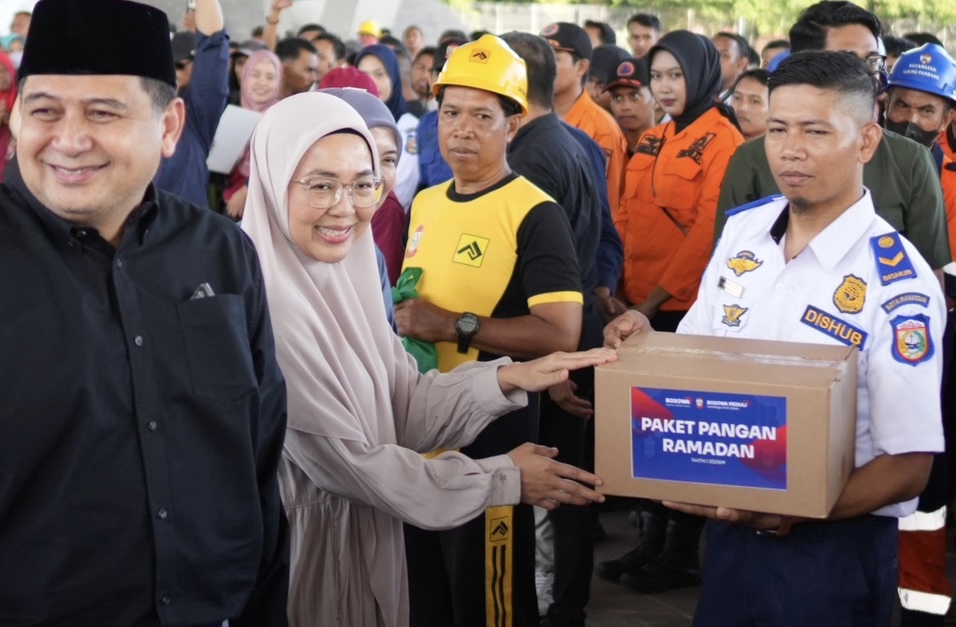 Melinda turut menyerahkan paket Lebaran kepada para petugas yang selama ini menjadi garda terdepan menjaga kebersihan dan kenyamanan lingkungan kota.