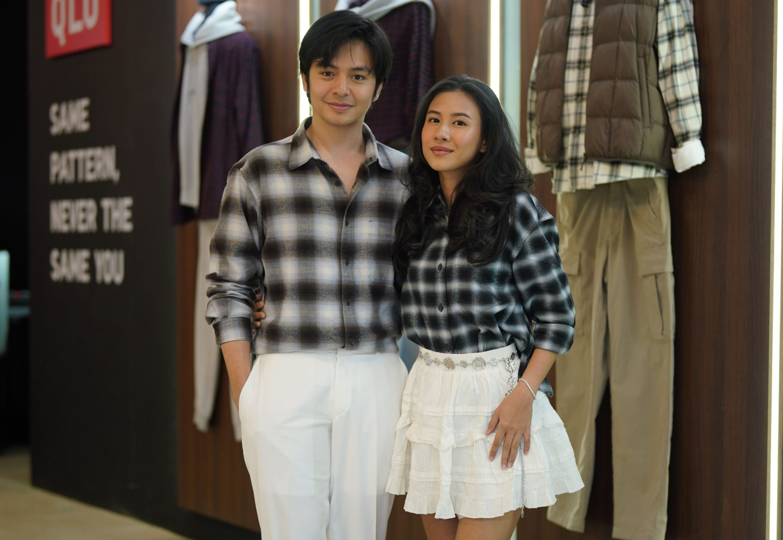 Layering like a pro! Pasangan stylish Vidi Aldiano dan Sheila Dara hadirkan gaya modern yang playful lewat pilihan layering dan paduan warna yang tak biasa. Vidi tampil santai namun tetap stylish dengan Kemeja Flannel Kotak Lengan Panjang merah dan Celana Rileks Linen Blend warna beige, dan lilitan Kemeja Flannel Kotak Lengan Panjang biru pada pinggang. Sementara Sheila memadukan Kemeja Flannel Lembut Kerah Skipper Lengan Panjang ungu yang ditumpuk dengan Rompi Pendek Kasmir Kerah Bulat hijau dan Rok Model Celana Flare.